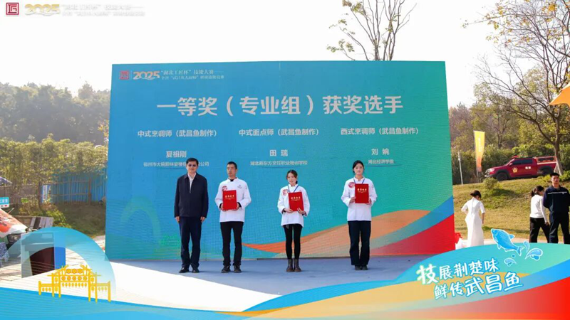 11月16日,2025年“湖北工匠杯”技能大赛——全省“武昌鱼大厨师”职业技能竞赛圆满落下帷幕。来自鄂州市大碗厨味宴楼餐饮有限公司的烹饪团队凭借对武昌鱼烹饪技艺的精准把控与创新演绎,从200余名参赛选手中脱颖而出,一举夺得中式烹调师项目头名,为“中国武昌鱼之乡”“中国武昌鱼美食之乡”——鄂州再添光彩。此次赛事不仅是楚菜烹饪技艺的巅峰对决,更成为鄂州市武昌鱼全产业链高质量发展成果的生动展示窗口。