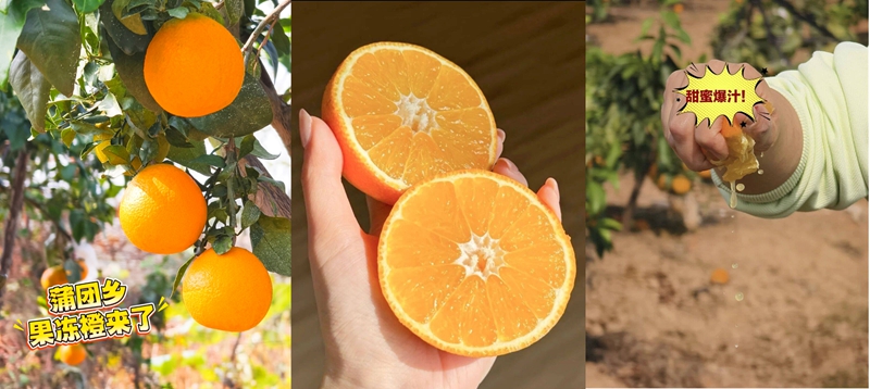 蒲团乡横山村现有十余亩果冻橙,在果农的精心培育下,橙子均自然成熟,无需催熟、不经打蜡。其果肉口感Q弹似果冻,无籽无渣,食用方便;入口汁水丰盈,酸甜比例恰到好处,深受大家喜爱。