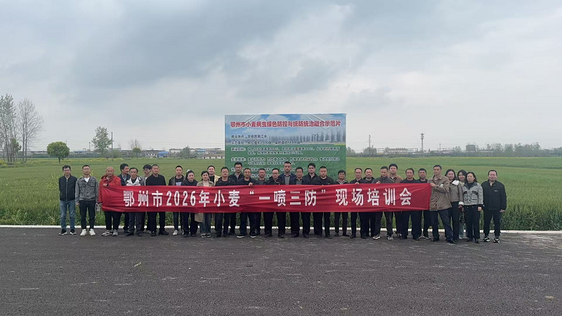4月3日,鄂州市华容区临江乡粑铺村的麦田上空,阵阵嗡鸣声响彻田间,多架搭载北斗导航系统的智能植保无人机往来穿梭,对村内3500亩小麦开展专业化“一喷三防”作业,这也标志着我市2026年小麦“一喷三防”工作正式全面启动。