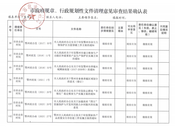 鄂州市农业农村局2025年规范性文件清理结果