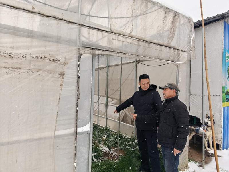 “这里需要加一根支撑立柱,防止积雪损坏大棚。”梁子湖区农业农村局农技专家周宏在沼山镇少峰村蔬菜基地,指导农户抢抓时间清扫积雪,加固大棚,强化保温增温,严防蔬菜冻害发生。